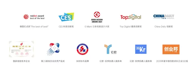 在受到市场应用端用户的高度信赖和认可的同时,普渡机器人也多次收获殊荣,载誉而归。2020年普渡机器人斩获美国“2020 CES科创奖”,并挂牌成为唯一一家“广东省室内智能移动机器人工程技术研究中心”的机器人制造企业,2021年普渡荣获得“深圳知名品牌”认证。产品设计上,智能送餐机器人“欢乐送”,于2017年获得了素有“设计界奥斯卡奖”之称的德国红点最佳设计奖,开创了业内无轨配送机器人之先河;2021年,消毒机器人“欢乐消2”又以独具匠心的设计和无可比拟的实用性夺得日本优良设计大奖GOOD DESIGN AWARD。普渡机器人卓越绝伦的产品,正不断受到全世界的关注和认可。