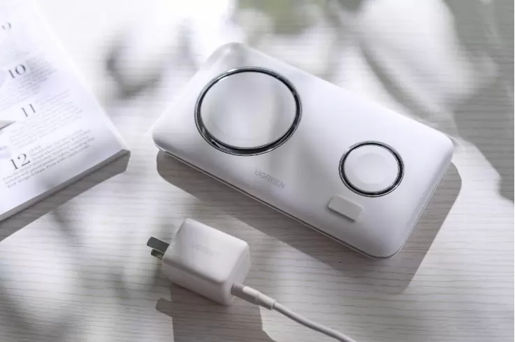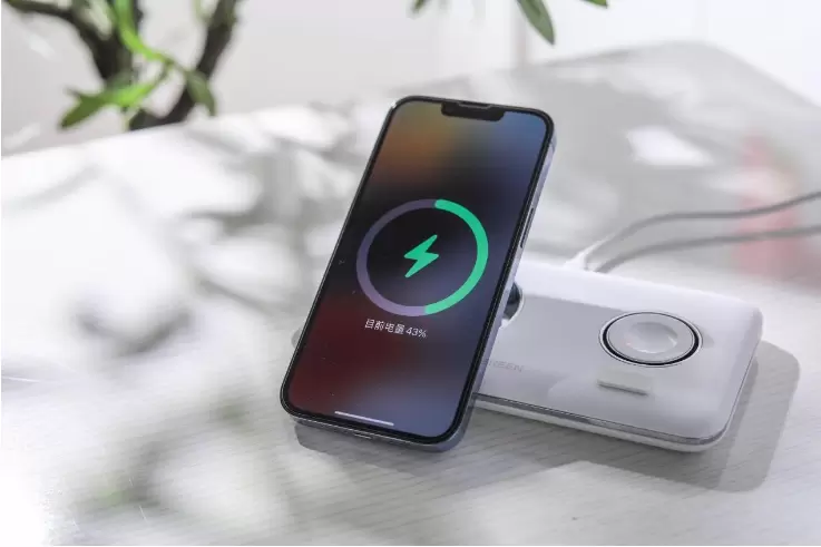 这一点主要也是因为绿联用的是苹果同厂的MagSafe磁力模块和充电模块,这等配置能够和iPhone机身中的磁吸模块精准匹配,对苹果设备的电池寿命也会更加友好。