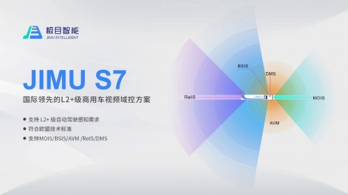 针对这种情况,极目智能立足全球商用车市场打造了领先的多路视频域控解决方案JIMU S7,支持 L2+级智能驾驶感知需求,符合欧盟UNECE R159 MOIS和R151 BSIS技术法规标准。