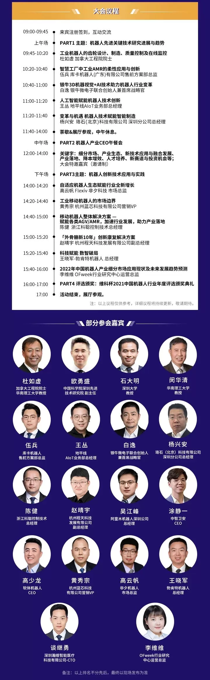 以下为OFweek 2022(第十一届)中国机器人产业大会日程: