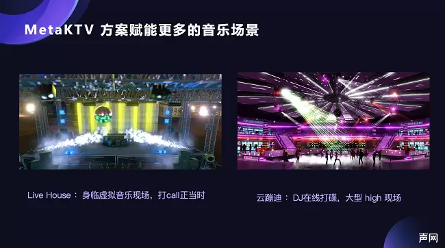 不止是 K 歌,声网MetaKTV 解决方案可以赋能更多的音乐场景和形式,为企业和开发者带来更多创新玩法。比如,热度不减的云蹦迪,b站上兴起的“修勾夜店”就是 DJ 在线打碟,众多玩家化身虚拟“狗头人”蹦迪、聊天 high 不停。还可探索云LiveHouse、户外音乐节等诸多场景及互动形式。