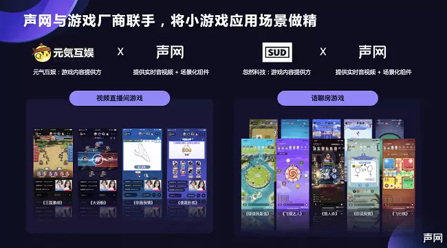 企业无需担心接入繁琐、开发复杂、用户终端无法适配等问题。声网互动游戏解决方案可灵活接入各类娱乐社交应用场景,目前已适配30000+移动终端,游戏轻量级、秒开即玩。同时,声网正着力打造互动游戏开放平台,目前已与元气互娱合作,推出跨房间PK类型游戏《王国激战》;与忽然科技合作,引入《碰碰我最强》等20多款小游戏,旨在提升语聊场景互动性,带来新的用户活跃留存点;又与执象科技合作,推出《PopStar!》等小游戏,之后将服务于海外平台客户。未来,还将与欢澄科技等更多游戏商携手,共建丰富的游戏资源和能力,打造更多创新玩法,繁荣实时互动游戏产业生态。