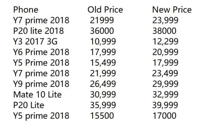 北京时间7月21日下午消息 华为消费者BG日前因美元汇率变化上调了其手机产品在巴基斯坦的售价,修订后的价格自7月19日起生效,涨幅在1300-4000卢比(C114注:约合人民币78-241元)之间,涨幅最高的机型为P20 Lite。