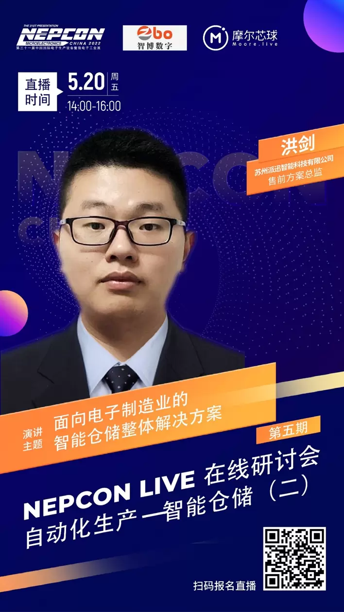 5月20日(周五)下午2点,NEPCON携手合作伙伴智博数字联合举办第五期 NEPCON LIVE在线研讨会:自动化生产--智能仓储(第二期),本次活动将围绕仓储集成方案、物流解决方案、工厂数字化整体解决方案为听众带来案例及技术分享,助力于提升行业在仓储物流环节的整体自动化、数字化及智能化水平。