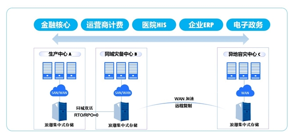 浪潮成熟的双活、两地三中心技术方案已经在金融、医疗等关键行业有大量的成功实践,无论是在实际发生的灾难还是灾备演练,RPO和RTO均接近于零,有效保障了用户关键业务的连续性。