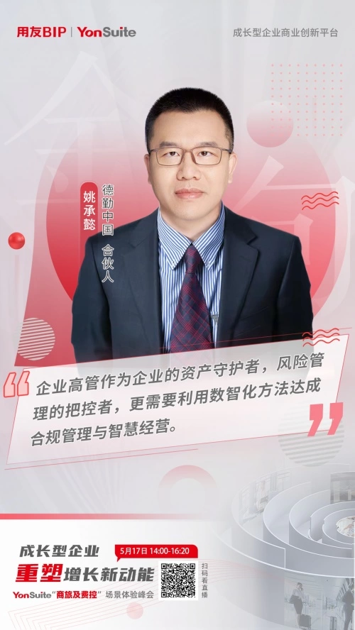 据咨询机构的调研显示,60.6%企业认为差旅费预算2021年比2020年增长20%以上。差旅费用管控数字化转型已成企业刚需, 同时差旅费用也是企业第二大可控成本,因此企业实现商旅的成本可控、合规管理、差旅决策和员工体验成为了管理的重要一环。有鉴于此,本次峰会邀请了德勤中国合伙人姚承懿先生,以“合规管理,智慧经营”进行了主题演讲,向与会嘉宾分享了数智化时代下,企业商旅及费控风险的管理实践。