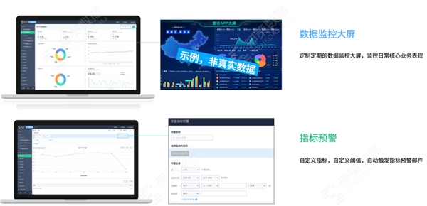 在数据层实现打通统一后,接着我们结合行方数据平台上原有的行为数据及新接入的数据源,通过与各业务部门的需求访谈以及对原有数据的梳理,最终重新梳理制定指标体系,并在神策用户体验管理平台内落地实现指标的可视化管理,在此过程中还建立了数据大屏、数据监控预警后台,为业务提供有效的数据支持及监控。
