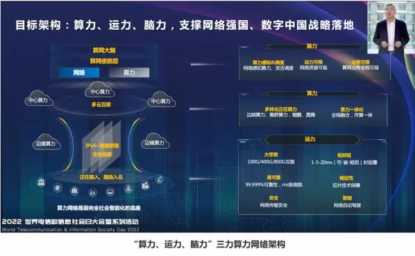 华为中国区运营商网络Marketing部部长曹长阳在题为“算力网络三力协同,数字经济三方循环”的演讲中表示:“基于‘算力、运力、脑力’的三力算力网络,存、算、网一体的协同架构,将成为支撑网络强国、数字中国的新一代信息基础设施的架构。”