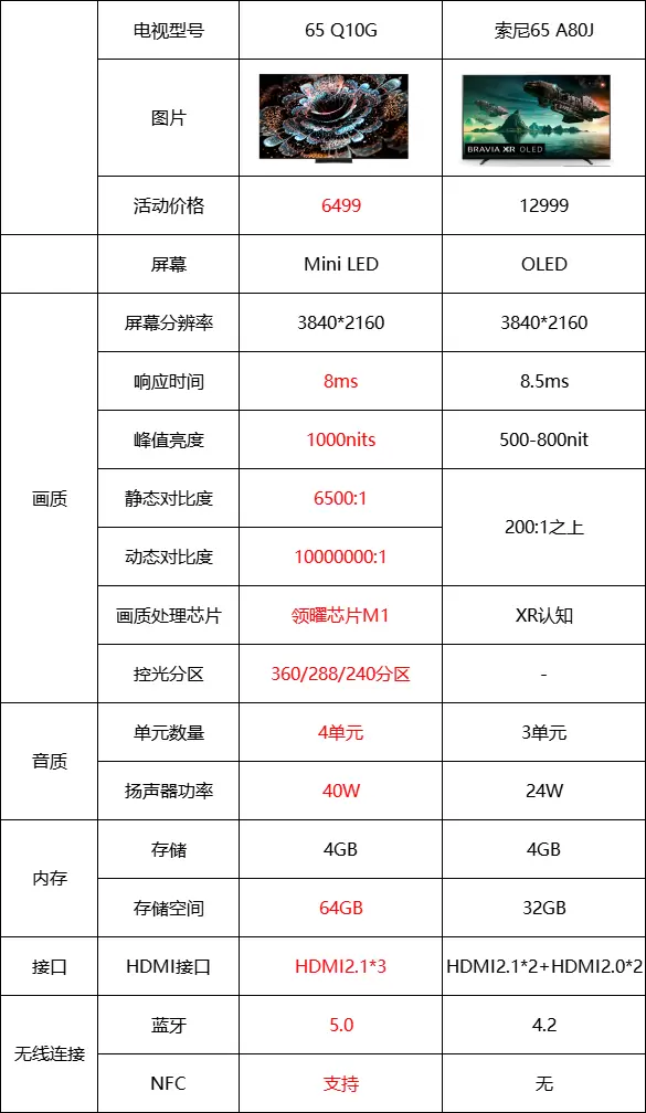 TCL Q10G王炸亮相!横向对比索尼A80J孰强孰弱?