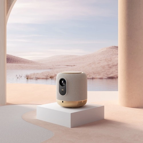 峰米V10创新性的采用圆柱形设计,打破一般大众对投影产品的方正刻板印象,让圆形带来的“温暖感”中和科技的简约感,同时峰米V10在顶盖设置木质纹路,花色流畅细腻,搭配Kender蒙布装饰,提升美感之余,还能和多种家居风格融合,优雅的设计风格,让峰米V10不止于投影仪,而更像是一件风格百搭的家居艺术品。
