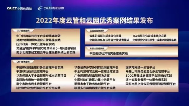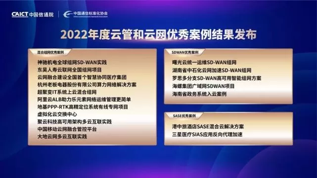 与此同时,中国信通院还在会上发布了“2022年度云管和云网优秀案例”,包括27个云管类案例和18个云网类案例在内的45个优秀案例成功入选,树立行业标杆。