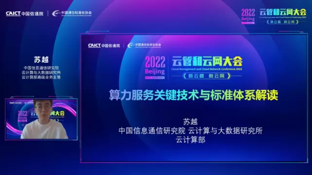 当前,算力已成为全社会关注的焦点,是驱动经济社会高质量发展的新型生产力。算力究竟是什么?算力服务又包括哪些关键技术?在本届大会上,中国信息通信研究院云计算与大数据研究所云计算部高级业务主管苏越对“算力服务关键技术与标准体系”进行解读。