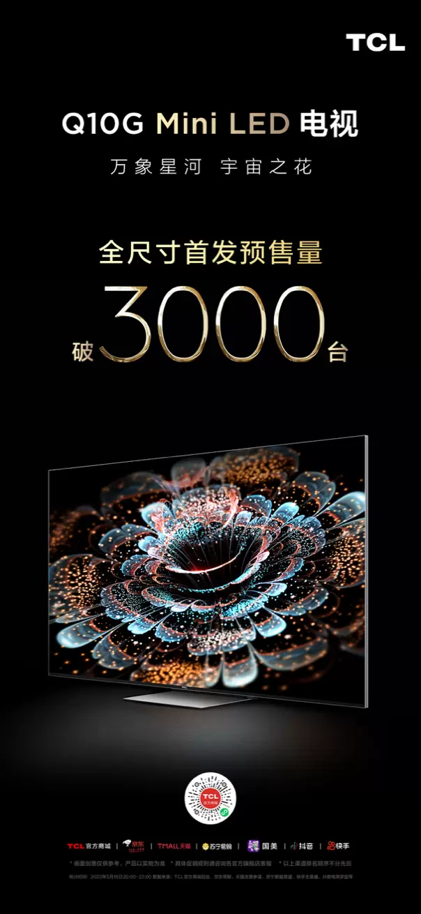 目前这款TCL Q10G正在全网火热预售中,5月20日起就与您一起观览万象星河!在与更高价位的海信U7H的比较中,无论是独领风骚的Mini LED技术,以及在音画质表现或是性能配置等方面上,TCL Q10G都有着强大的吸引力。现在TCL Q10G正在新品首发期,打开京东搜索TCL Q10G即可参与,其中55英寸新品首发价4499元,65英寸新品首发价6499元,75英寸新品首发价8499元,85英寸新品首发价12999元,想购买TCL Q10G的小伙伴们现在就可以下单了!