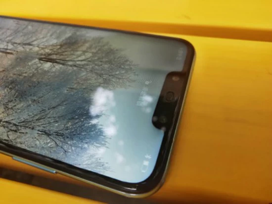 机身正面采用了时下流行的“刘海”造型。3.55mm极窄中框, 19.5:9全面屏,重量仅166g。正面息屏一体化设计,屏幕与边框零色差。