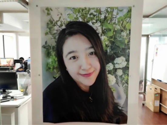 而对于海报级的宣传,科技讯也亲身体验,喷绘了超大海报为大家提前探秘。从下图大家可以看到冲洗出来的照片超级清晰,整体效果非常惊艳,色调与磨皮程度处理恰当。皮肤不仅光滑,还保留了不错的通透感。细节处理的也很不错,靠近看,眼眸位置细节纹理清晰,过渡区域自然。