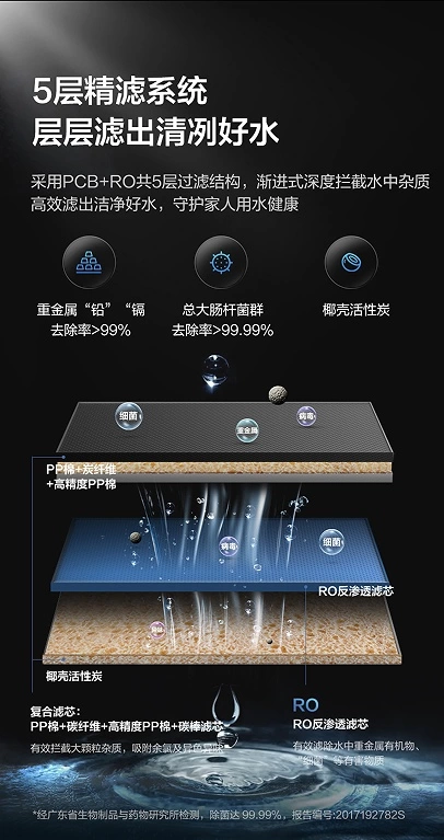 5层精滤清冽好水,大通量畅饮更安心