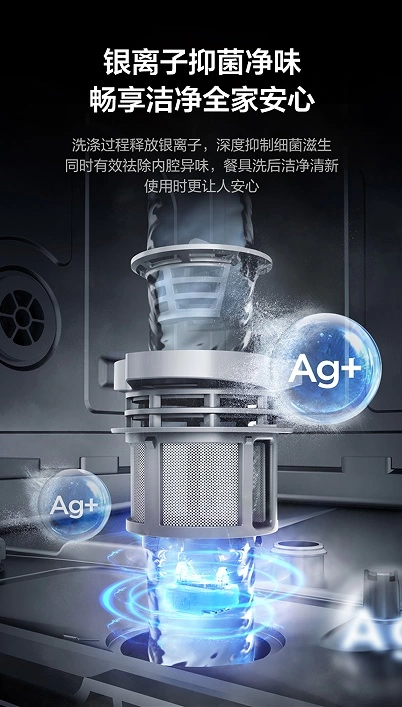 与此同时,在洗涤过程中,能够释放银离子,深度抑制细菌滋生,有效祛除内腔异味,并且它还获得了三星消毒认证,通过高效热风烘干+72H循环换气存储,让餐具持久清新,时刻守护家人饮食健康。