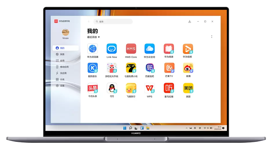 同时,华为应用市场还将移动应用与PC桌面的使用体验壁垒打破,用户可直接从桌面图标或开始菜单等位置快速打开使用已安装的移动应用,操作更加简洁轻便。登录同一华为帐号,实现多设备一键同步已安装应用列表,省去再次搜索的烦恼,让用户更好地畅享全场景应用多端流转,助力高效工作,开启精彩生活。如今,华为应用市场已是全球排名前三的应用商店,为超170多个国家和地区的华为终端用户提供服务,全球月活跃用户已超过5.8亿。随着HUAWEI MateBook 16s的上市,华为终端云服务也将不断丰富PC应用生态,基于华为应用市场一站式打造Windows应用、快应用及移动应用的融合生态全新体验,让用户畅享更贴心、更智慧、更便捷的全场景应用体验。
