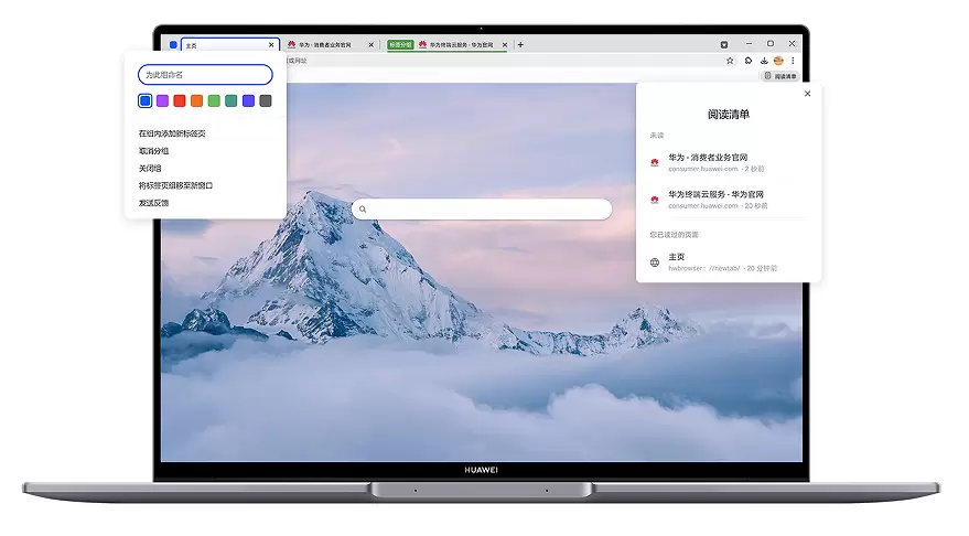 华为浏览器,基于华为帐号,收藏书签后,实现跨端同步,无论身边是手机、PC还是Pad,都能随时打开收藏精彩,浏览来去自如。此外,华为浏览器提升了标签页管理能力:打开多个标签页浏览时,可以对标签页按模块进行自定义分组,告别杂乱分布;还能对标签页进行搜索,释放工作效率,高效浏览一触即达。当遇到未阅读完想临时保存的网页时,用户可添加网页至阅读清单,留待下次浏览。浏览器将自动对保存的标签页进行“已读”与“未读”状态归类,阅读情况一目了然,精彩存续,随时接力。