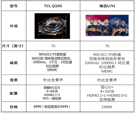 为什么TCL Q10G能做到:55英寸新品首发价4499元,65英寸首发价6499元,75英寸首发价8499元,85英寸首发价12999元,如此具有诱惑力的价格?答案很简单:TCL有自家的屏厂华星光电、有自己的LED灯厂、有自己上游半导体材料和芯片;可以说是行业唯一一家拥有全产业链的品牌。如果还感受不到这种直观优势,请看表格中两款电视的配置与实际售价之比较。