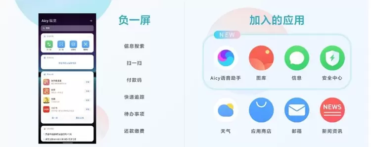 •预装Flyme适配App,首次加入负一屏、安全中心、Aicy语音助手、短信、图库