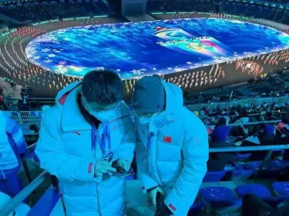 中国移动保障人员在冬奥会开幕式现场测试网络信号。