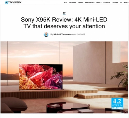 Techweek 评测文章《Sony X95K Review: 4K Mini-LED TV that deserves your attention》