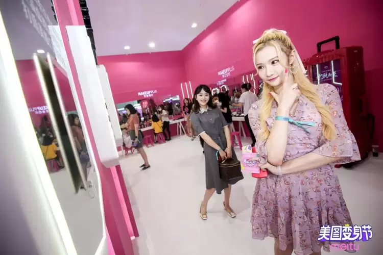 首站打卡美妆相机试装间,这里是美妆爱好者的天地,无论是日系甜美风,还是成熟OL妆,“美图魔镜”都能一秒轻松实现,成为很多美妆达人必须打卡的环节。
