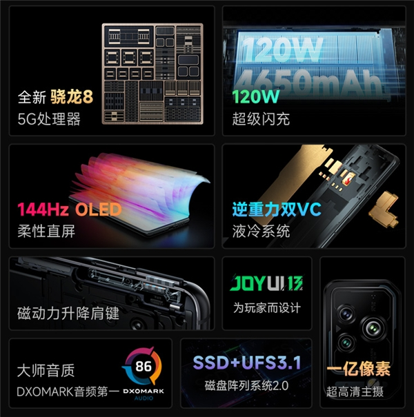 在日常使用体验方面,黑鲨5 Pro拥有120W超级闪充,同时配备有一块4650mAh的大电量电池,为玩家提供更为可靠的续航与快速充电体验。与此同时,黑鲨5 Pro的影像体验也拥有出色的表现,它采用了一亿像素高清主摄打造一整套影像系统,让用户通过手机可以轻松拍摄极为清晰通透的照片,同时还有好用又好玩的JOYUI13操作系统,无论是游戏辅助还是日常使用均能为用户提供出色的使用体验。
