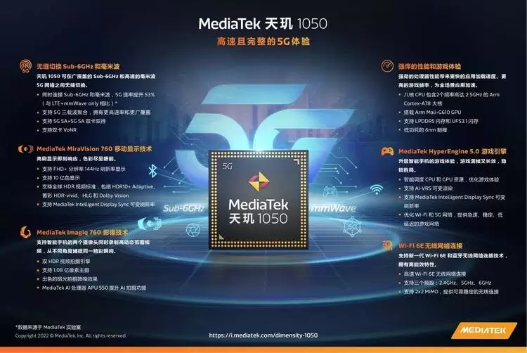 联发科天玑5G芯片再填新成员,天玑1050支持毫米波与Sub-6GHz全频段5G网络