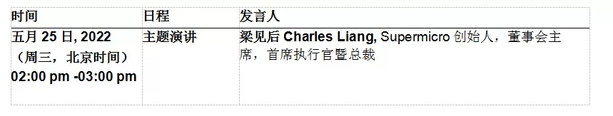 Supermicro首席执行官梁见后先生将针对市场状况、近期产品创新以及绿色计算的重要性进行深入讨论。此外,Supermicro的虚拟展台上将展示最新的服务器和存储产品以及客户成功案例。