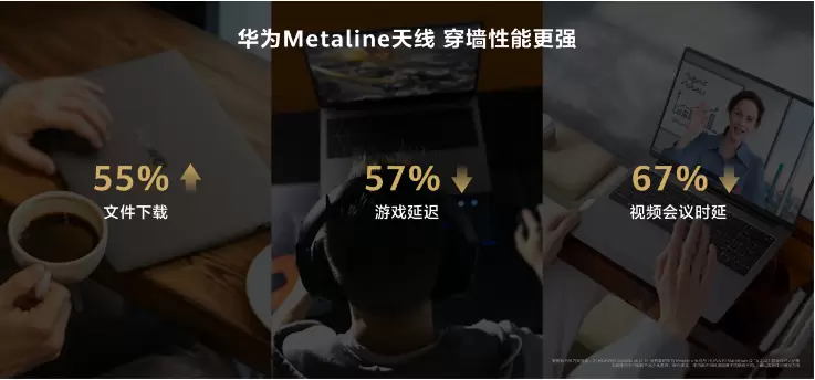 同时,华为Metaline天线采用电路滤波、优化布线、电磁挡墙三种抗干扰技术,让笔记本不但网速更快,还能获得长时间稳定运行。