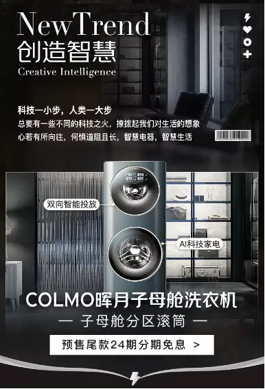 随着生活水平的不断提高,国民对于健康生活、品质生活也有了新的定义,洗衣机、冰箱、空调等家用电器除了要满足日常生活所需外,更要智能。COLMO晖月子母舱洗衣机,凭借高级的产品质感、出色的智控体验再加上高效、健康的洗涤能力,全方位满足了当下大众对于现代家居生活的新需求,让生活充满了智慧。