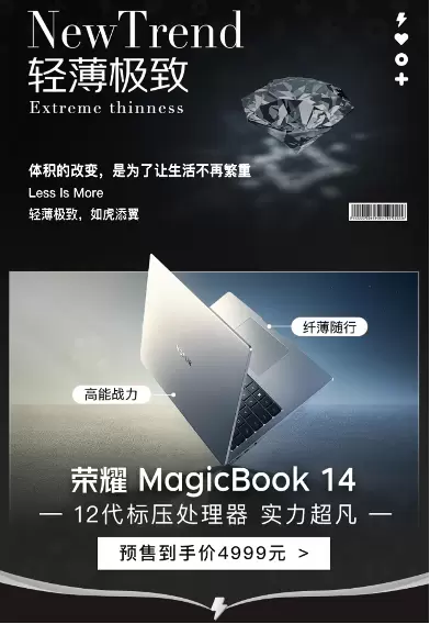 “轻”和“薄”一直是数码消费类产品追求的极致,尤其是对于笔记本和手机来说。在保证高性能的前提下,还要打造极致的轻薄体验,成为品牌追求的目标。荣耀MagicBook 14 2022,是一台有着12代标压处理器、高清高刷全面屏的超薄笔记本,也是全球首款14英寸搭载75Wh超大容量电池的轻薄本,整机重量最轻1.54Kg,机身薄至15.9mm,机身配重合理,支持单手开合,京东618预售到手价4999元。