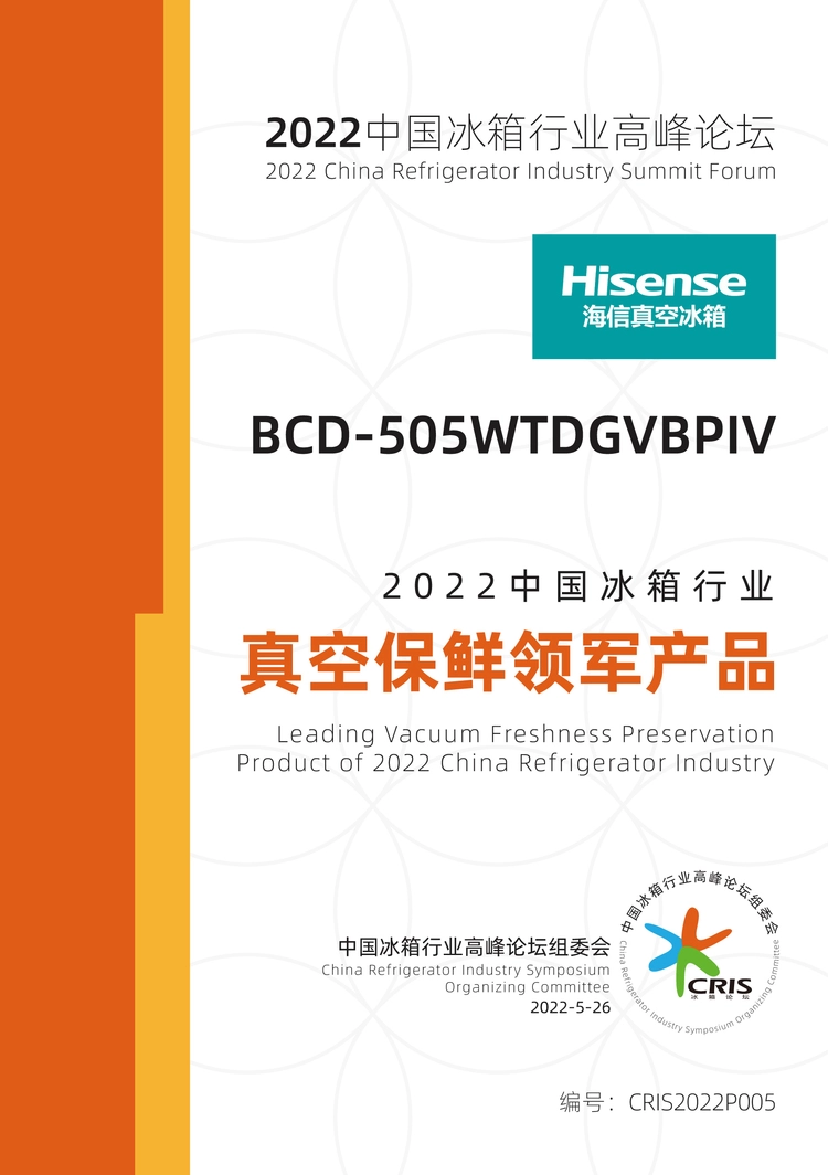 真空保鲜再获双重认证,助力行业稳步深度进阶。5月26日,在2022年中国冰箱行业高峰论坛上,海信真空冰箱凭借505产品的出色表现,斩获“2022中国冰箱行业真空保鲜领军产品”奖项,瞩目全场。