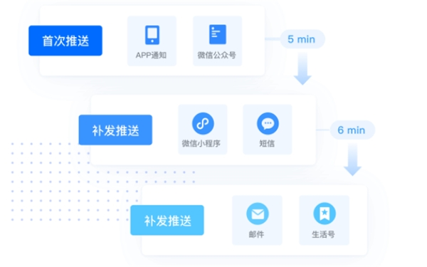 此外,极光UMS还支持即时、定时、多通道并发、离线保存、黑名单、敏感词、消息优先级、免打扰设置等多种发送策略,让运营者预设补发策略,详细设置每一步的补发通道、补发条件,避免因多个通道分别发送而产生的消息轰炸,在用户体验感和消息触达率上实现了完美平衡。