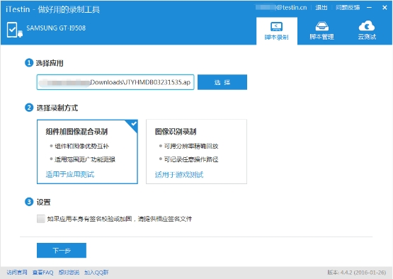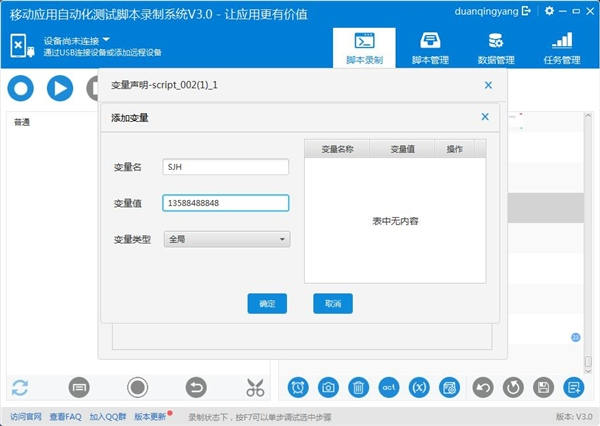 Testin云测试移动应用自动化测试脚本录制系统支持脚本参数化。
