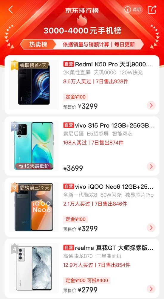 - vivo X80榜上有名 京东手机排行榜5月旗舰产品盘点