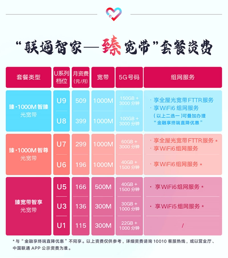 为了让更多家庭能够选择到更适合的“臻宽带”产品,北京联通全新推出“联通智家-臻宽带”品牌体系,围绕臻宽带智享-光宽带、臻·1000M智尊-光宽带、臻·1000M智臻-光宽带三大板块,通过Wi-Fi6、FTTR等产品端需求差异,打造U1-U9七重尊享权益等级,配送相应专属资源,低至115元/月起,让每一种需求得以真切实现,享受“臻宽带”为您带来的臻·智慧生活。