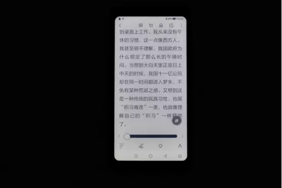 海信阅读手机A9还搭载了“整屏翻页”功能,通过实现整屏一次性翻页或者根据滑动距离一次性切换页面内容,有效减少阅读长文滑动频繁导致刷新界面出现的闪烁现象,从实际显示效果来看还是很不错的,屏幕几乎看不到残影,阅读体验得到了进一步的提升。