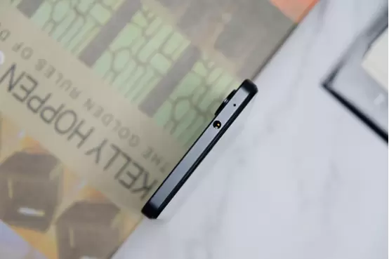 细节方面,机身右侧是音量键以及开机键,开机键采用了内凹设计,便于手指精准定位按键位置。值得一提的是,开机键还兼具指纹识别功能,日常使用更方便。