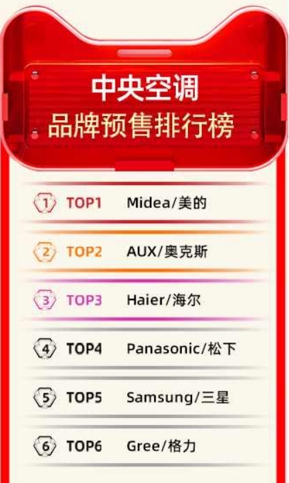美的中央空调618首战告捷,稳居天猫中央空调开门红预售榜单第一