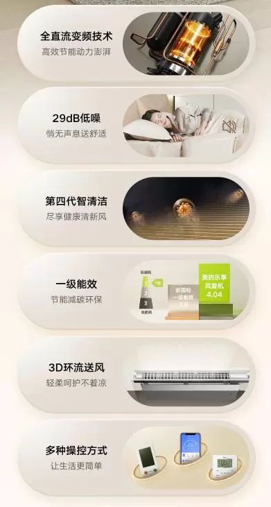 值得一提的是,美的乐享II家用中央空调加入了第四代智能清洁技术,四重步骤有效解决蒸发器附着的积尘和霉变,清新出风,营造自然舒适的居家环境;并支持智能操控和远程遥控,用户可以通过美的美居APP客户端和美的小美音箱快速发出指令,解放双手,乐享智慧生活。