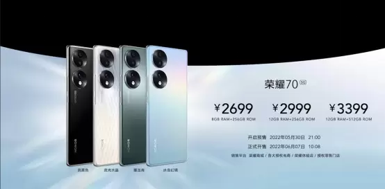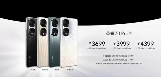 荣耀70系列实现了影像、外观、性能体验上的全面升级,称得上是一代全新换代之作。自2022年6月7日起,荣耀70系列将陆续在线上线下平台全面开售,具体时间详见荣耀官网,用户可登录荣耀商城及各大授权电商平台或前往线下门店进行购买。