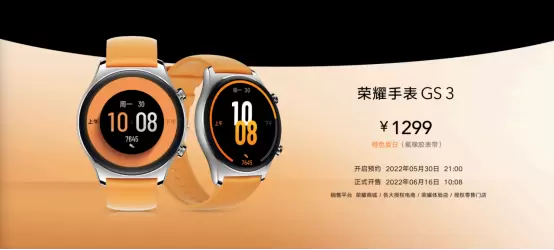 发布会上还公布了荣耀手表GS 3橙色夏日款,全新的橙色氟橡胶表带动感清爽,售价1299元。荣耀为还为这款智能手表更新了YOYO建议推送和YOYO智慧表盘,可以根据用户使用习惯智能推送信息和表盘,让荣耀手表成为健身、休闲、商旅的贴心助手。