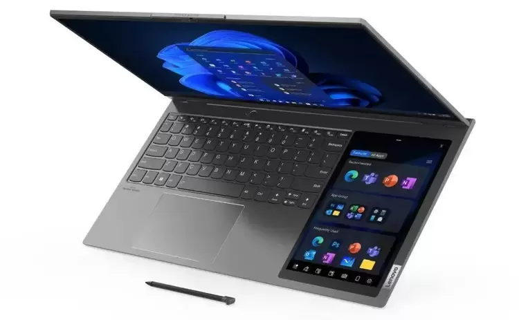 除了在折叠技术上,联想在多样化产品形态设计上的探索一直没有停止。CES 2022上,ThinkBook Plus第三代又一次惊艳了媒体与业界人士。ThinkBook Plus第三代的口号是“一个工具,无限可能!”,展示了联想对笔记本电脑形态与体验的全新探索与创新。ThinkBook Plus Gen3主屏幕是个21:10比例,比常见的14英寸常规屏幕多出30%的显示空间,屏占比达到90%。第二屏幕在标准键盘右侧,这块8英寸触控屏不仅可以作为随身携带的第二块显示器,扩展显示主屏幕的内容,比如更长的表格、多人聊天窗口,还可以实现数字绘图板,用摩托罗拉手机投屏等等功能。为了配合双屏,联想专门开发了E-Color数字笔,这根笔是全球首批内置专业潘通PANTONE专业色彩方案的数字笔。