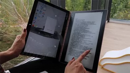 除了屏幕的多功能用途,联想还在产品的其他部件上提升人性化的体验。Yoga系列作为全球最轻薄笔记本的旗舰产品系列,从概念提出到成品出炉耗时八年之久。YOGA Book 2是全球首款AI电子墨水双屏智能笔记本电脑,并且独有表链式转轴,支持最大360°翻转。取消实体键盘,YOGA Book 2的笔记本B面,被一块E-ink墨水屏取而代之,它将墨水屏与Anti-Glare防眩光镀膜结合在一起,从而带来了纸一样的触感,被称为“最接近纸的电子墨水屏”。需要打字的时候,墨水屏会变成联想自主研发的虚拟触控键盘,并且拥有震动和音效反馈,按键上还加入了阴影和动态效果。此外,墨水屏还是一块智能手绘板(由联想自主研发,自带4096级触控笔),无论是画图、阅读,还是写字,都可以同步到主屏幕上。