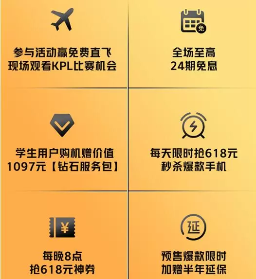 除此之外,还有全场加赠价值499元黄金服务包(内含5成保值换新)、爆款手机享1.2倍30天价保、学生用户购机赠价值1097元钻石服务包、参与活动赢免费直飞现场观看KPL比赛机会等超值福利。准备在618期间换新机的小伙伴,可千万不要错过iQOO品牌的豪华福利。