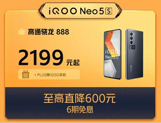 店铺福利方面,iQOO Neo5S享受至高减600活动后低至2199起,还赠送6期免息、半年延保、iQOO Type-C入耳式耳机以及黄金服务包-五成保值换新(预售PLUS会员专享)。