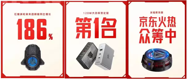 与此同时,努比亚/红魔生态产品在618开售1小时的表现也非常优秀。其中红魔涡轮背夹透明版销量同比增长186%,120W大功率氮化镓充电器销量位居同品类销量排行榜第一,得到了众多用户的青睐。此外,红魔×变形金刚版冰磁散热器也在京东众筹得到了广泛关注,不少喜欢变形金刚的大男孩们对其表现出了极大的兴趣。